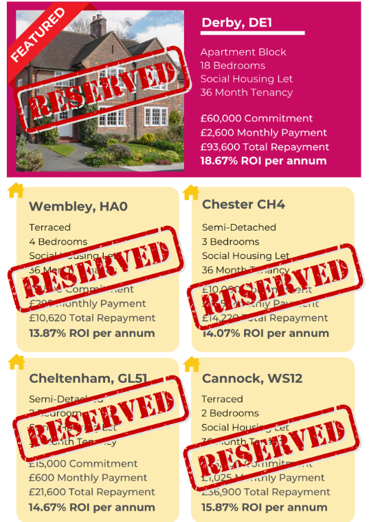 Investment on a innovative earn without owning service, which allows you to commit to funding property refurbishment on government backed guaranteed rent portfolio, and in return, receive regular monthly rent for the property. This type of investment is more suitable for low risk investors.